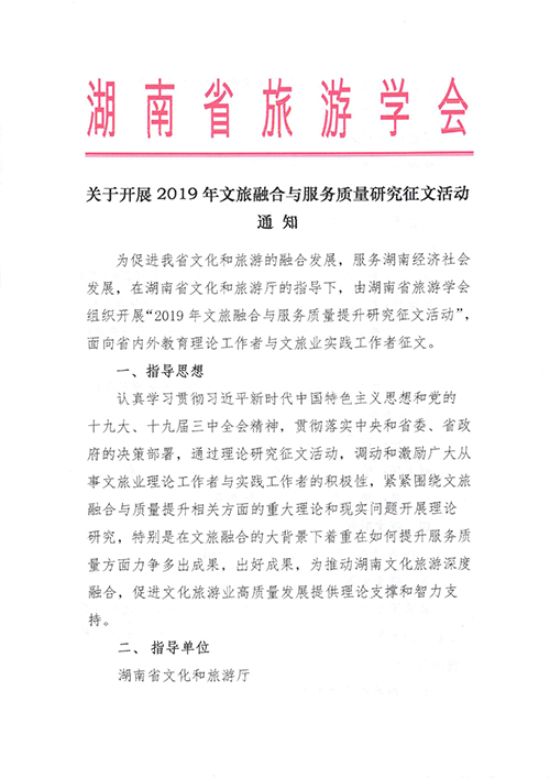 转发:关于开展2019年文旅融合与服务质量研究征文活动通知