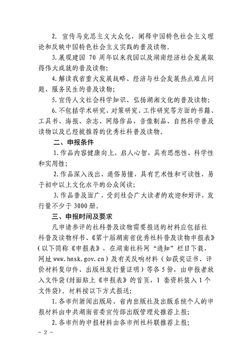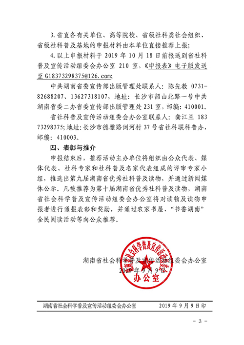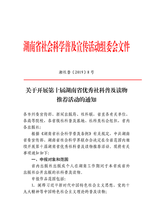 关于开展第十届湖南省优秀社科普及读物推荐活动的通知