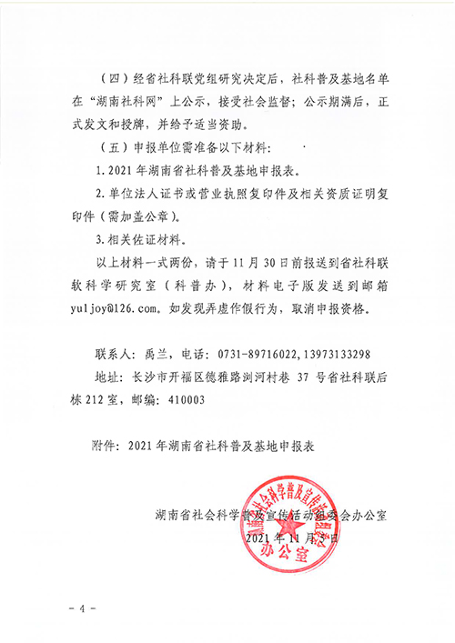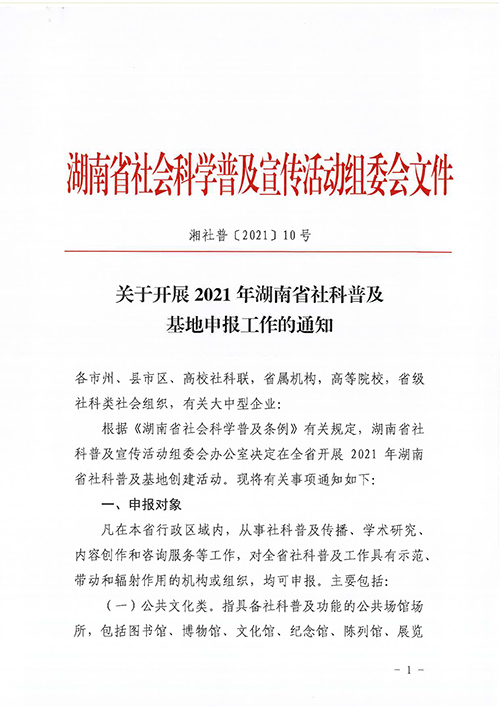 转发:湖南省社会科学普及宣传活动组委会办公室关于开展2021年湖南省社科普及基地申报工作的通知
