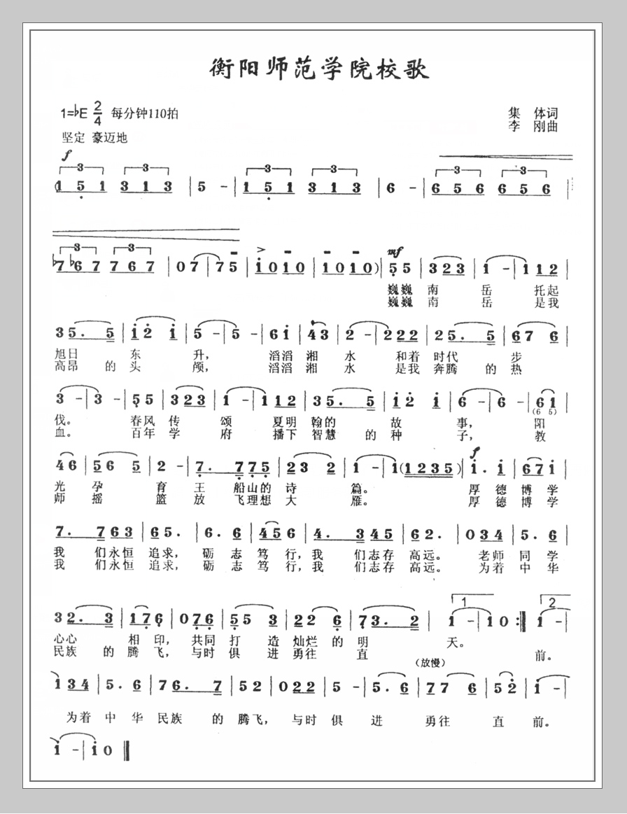校歌歌词为集体创作,由李刚教授谱曲,2002年7月修改完成。