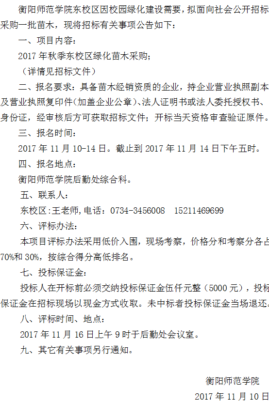 新葡的京集团8814检测站东校区2017年秋季绿化苗木采购招标公告