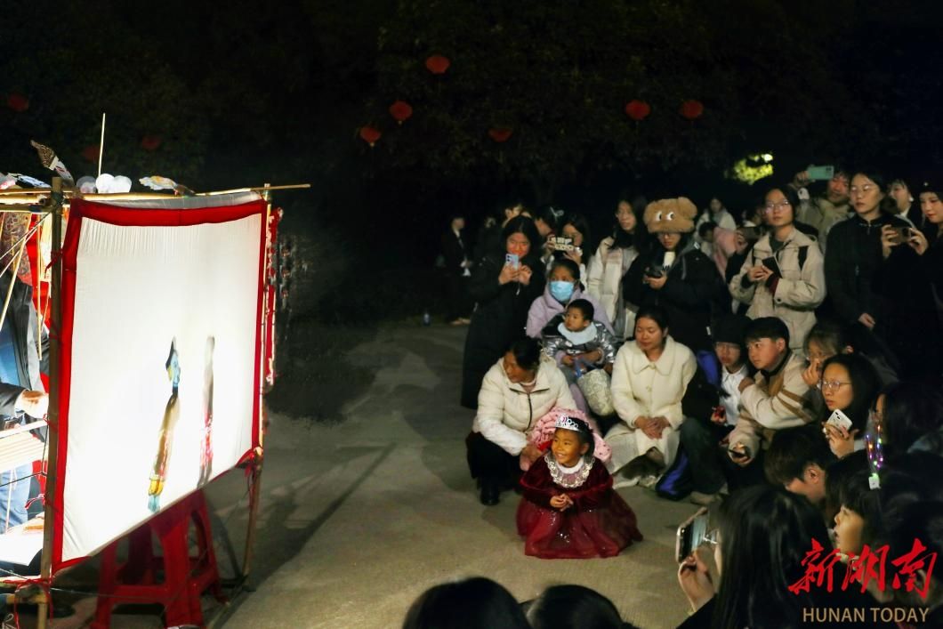 传统文化展示区前龙狮翻飞,喝彩阵阵。皮影戏表演者们唱念做在舞台上跳跃、舞动,光影交错间如同一幅流转的画卷,激荡着千年的韵味。
