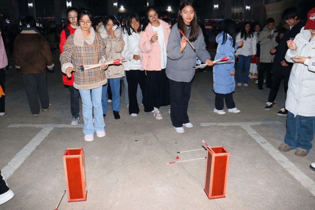 “咣当咣当——咣当咣当——”学生们排排站立,一声令下后手持长柄钩推动铁圈奔向终点,原来是在以“速度与激情”一决高下。“膝盖微屈,正确持弓,把控力度,让箭滑行入壶,原来小小的投壶也内含乾坤。”物理与电子工程学院2021级物理学2班的蒋文婷一口气连中三支箭,极为兴奋地说。她表示每个游戏都蕴含着独特的乐趣与韵味,让她在尽兴享受的同时更加深刻地感受到中华传统文化的底蕴风流,希望以后学校能有更多的与中国传统文化相结合的活动。