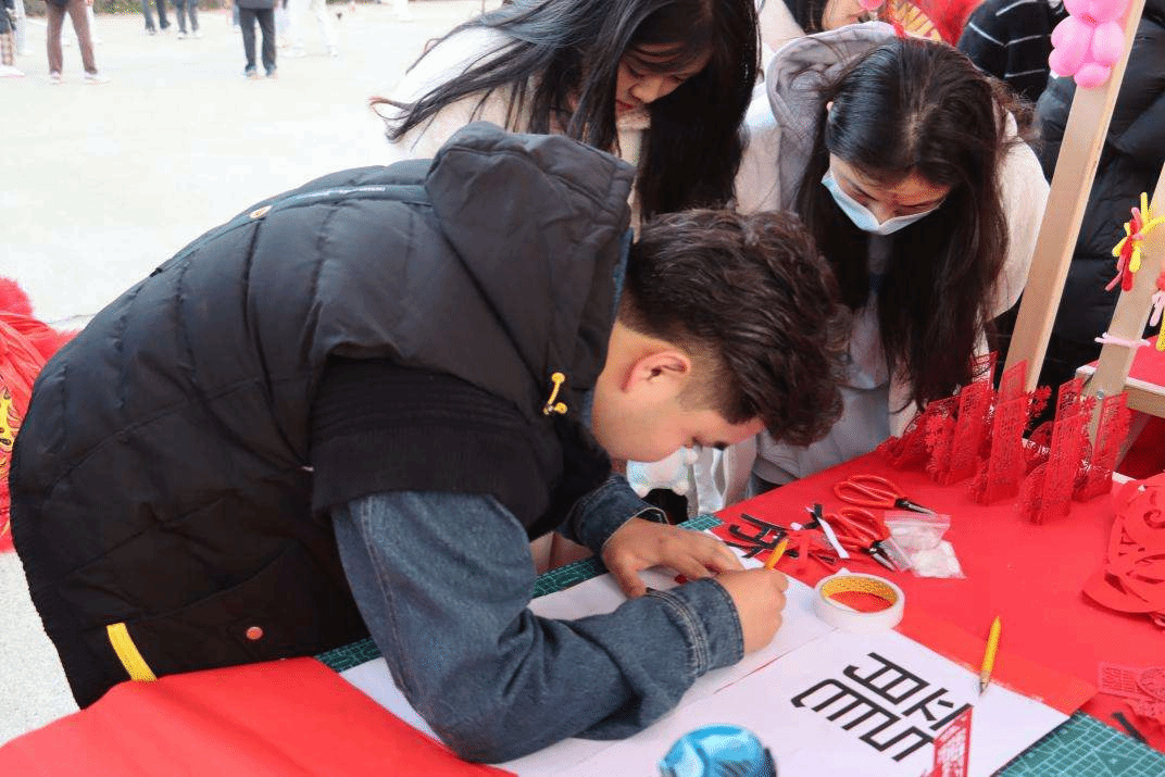 丰富多彩的传统文化表现形式,充满童趣的游戏环节设置,引人入胜的活动展演吸引了大批师生前来参与,活动现场人头攒动、热闹非凡,活动摊位前排起了条条长龙。师生们一起穿龙灯、赏舞狮,看皮影戏、写春联、剪窗花、绕缠花、捏面人、做糖画、写对联、送福字……丰富多彩的中华传统民俗活动令师生们意犹未尽,流连忘返。