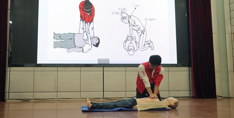 除理论知识的传授外,活动还设有演示环节,主讲人通过课件展示、现场互动等方式,全方位、多角度地为大家普及了心肺复苏、海姆立克急救法等急救处理办法。