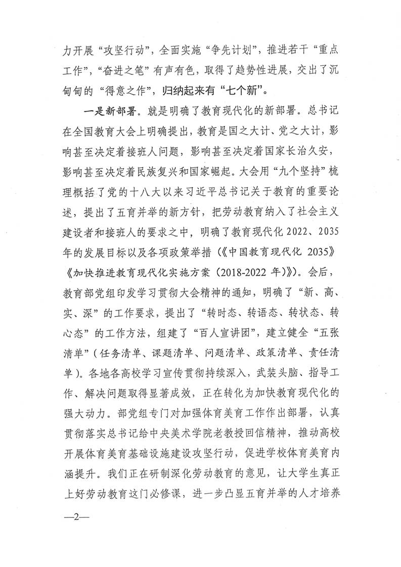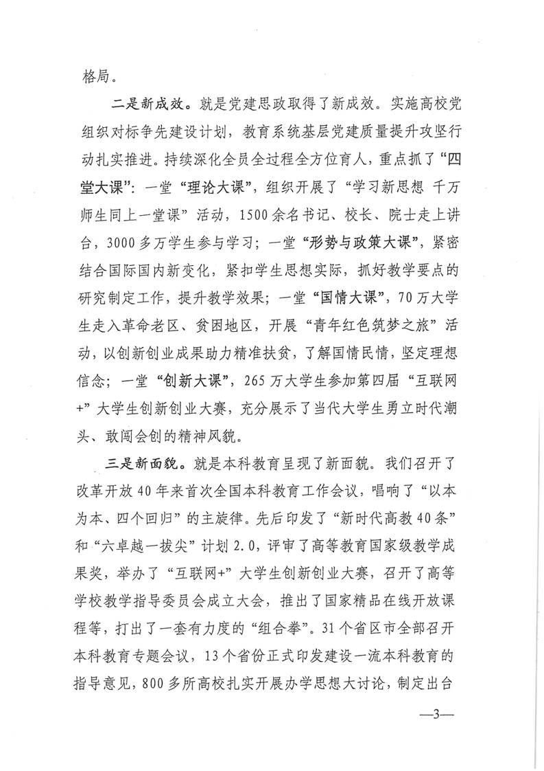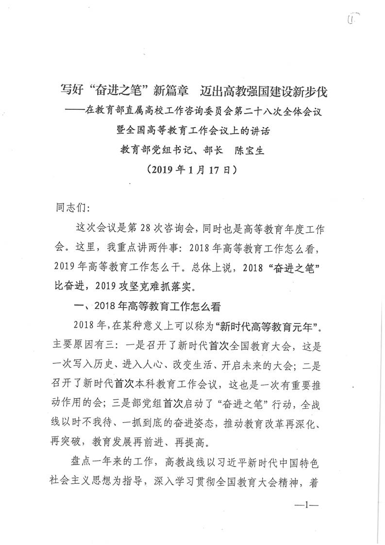 教育部陈宝生部长在全国高等教育工作会议上的讲话